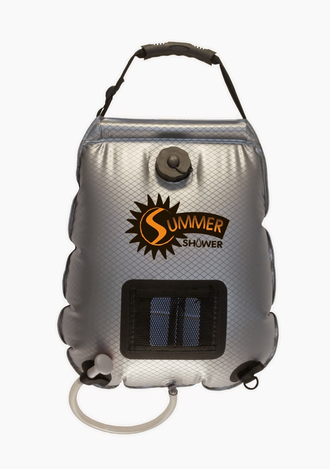I hope to strap this five-gallon shower to the luggage rack on top of my car so it can heat up during the day, then use it for showering when I stop in a secluded location.